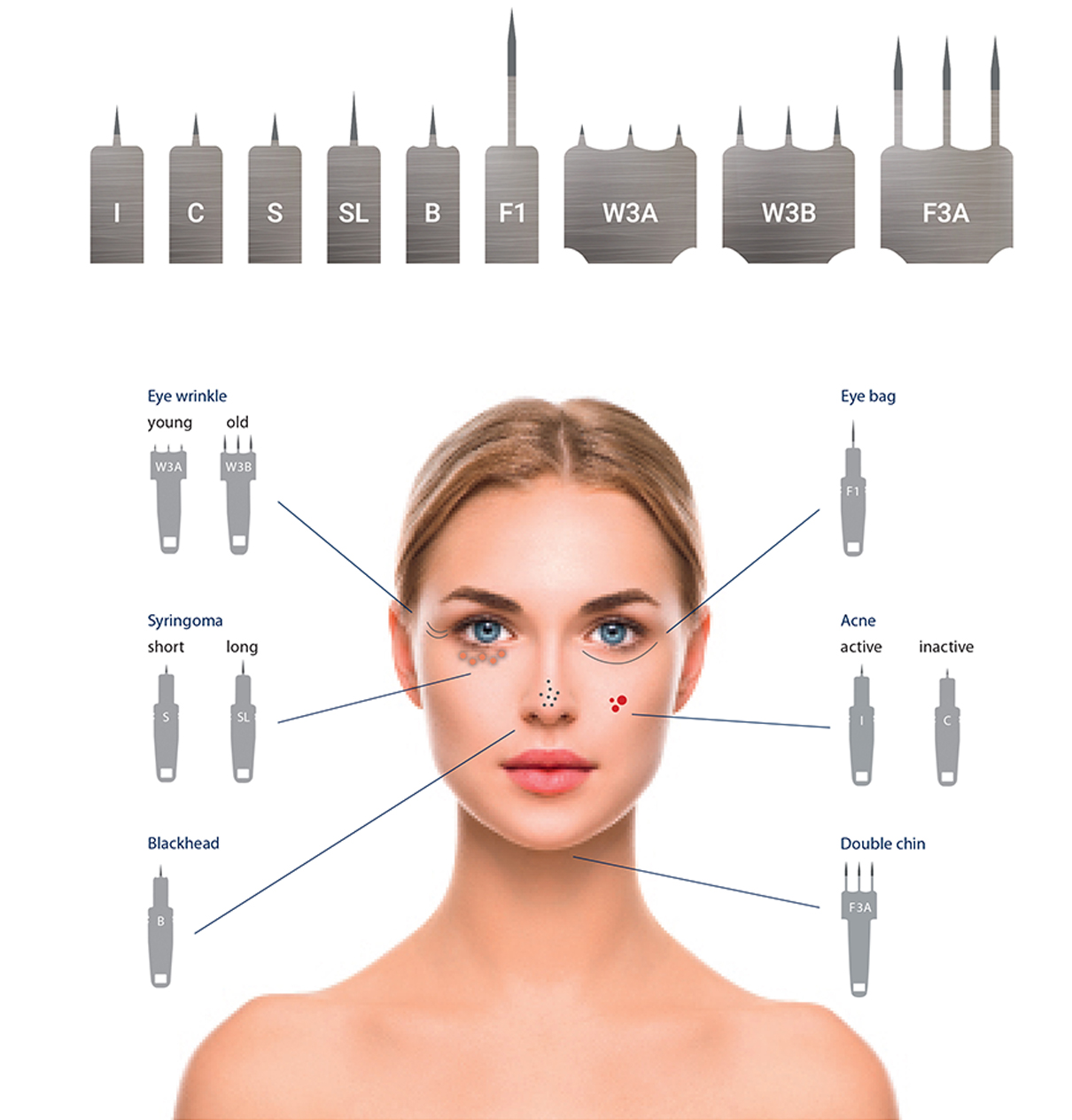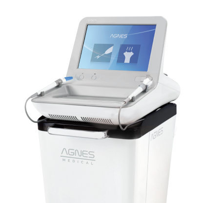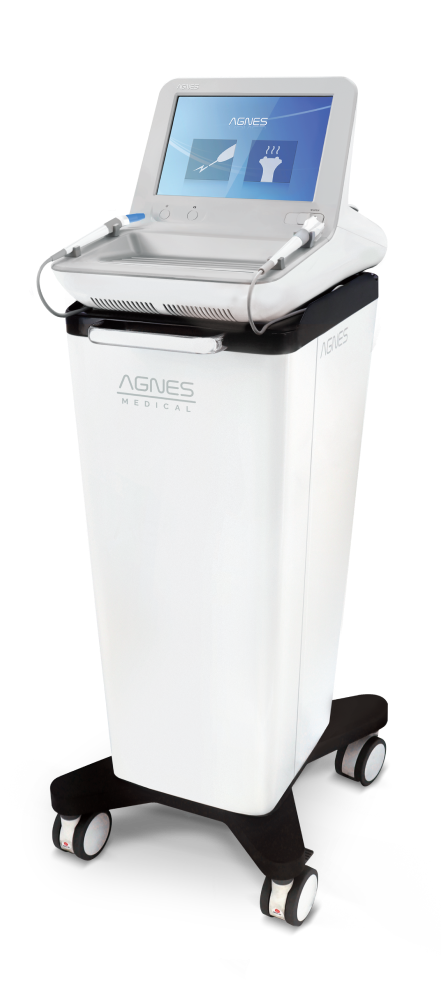 아그네스는 절연된 마이크로니들 (Micro - insulated Needle 미세절연침)과 고주파(RF) 에너지를 이용한 의료기기 로 높은 임상효과를 위해 피지선 깊이만큼 열을 전달하여 정상조직(표피층)을 거의 손상없이, 피지선을 응고하는 의료기기입니다.
