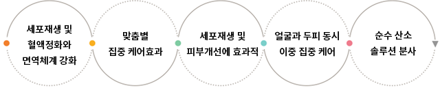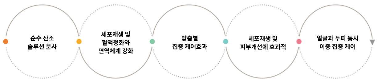 순수 산소 솔루션을 분사하여 피부 속 수분을 보충해줍니다.